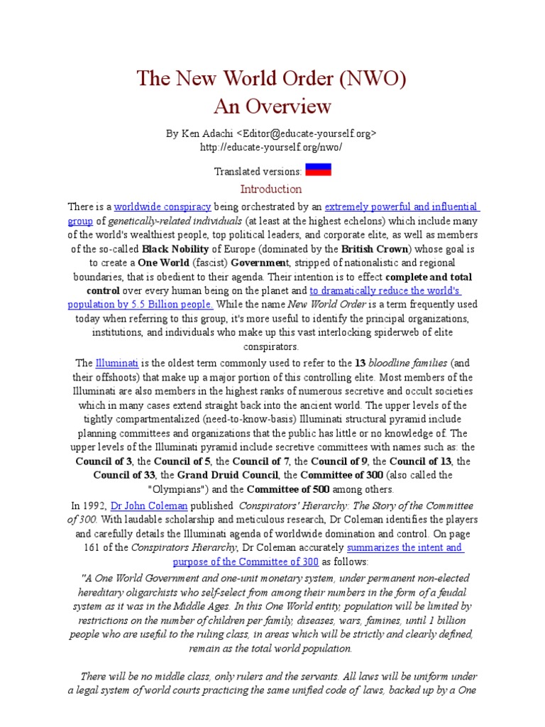 The Modern Day Illuminati: The New World Order - Words | Bartleby